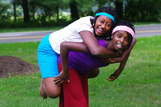 You know that scenario where the puppy wants to play but the grouchy, old dog is just not into it? That’s totally the dynamic between our two oldest girls. This just happened to be a day this past summer where the old dog was indulging the puppy. Any guesses as to who is the puppy?