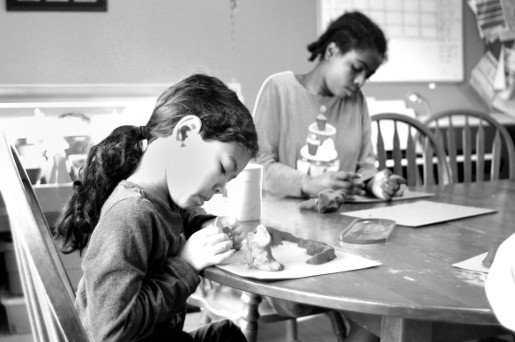 It was one of the those mornings. I didn’t think we’d all make it out alive let alone have a picture to tell about it. This was the calm after the storm. The kids were making land forms out of play dough.