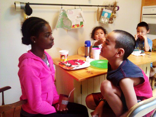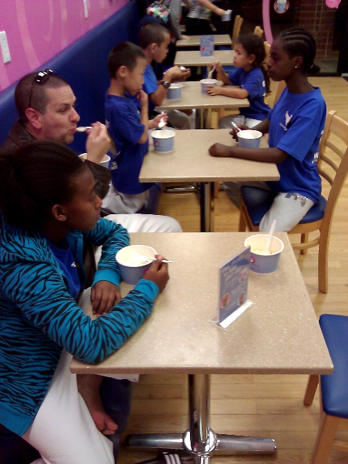 We now have 8 people taking Tae Kwon Do. Most Mondays mean 3 hours at the Do Jang so everyone can get to a leveled class. Dinner is usually cereal in the back room. Sometimes it’s ice cream.